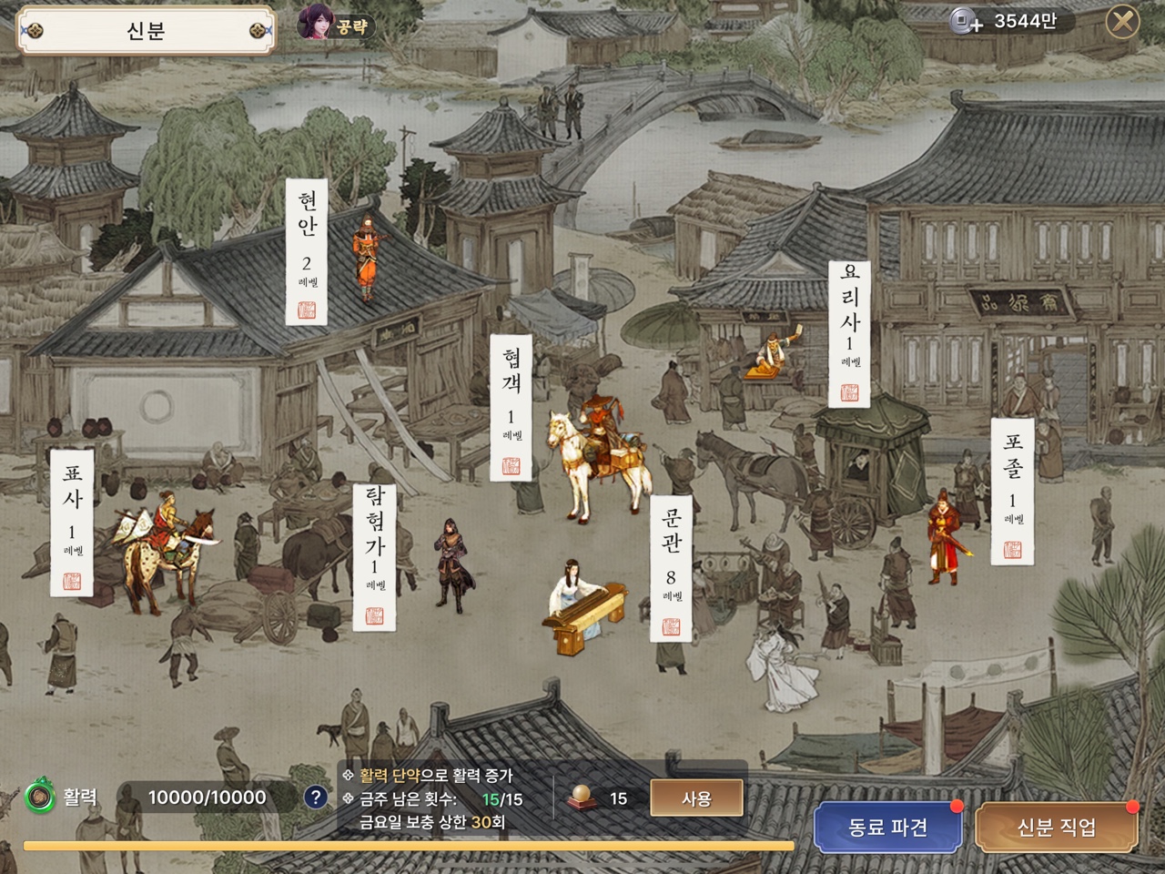 표사는 표행을 하면되고 협객은 그냥 싸우다보면 오른다 탐험가는 지하탐험을 해야하는데 진짜 노잼이다..처음엔 좀 재밌을지도..문관은 퀴즈만 풀면오른다. 요리사는 낚시.. 포졸이랑 현안은 수배랑 암살 뭐 이런거였던거 같은데 지금생각하려니까 기억이 안난다..