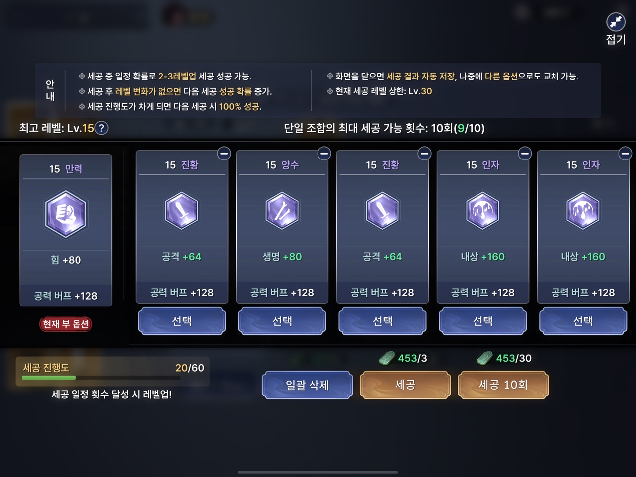 절대 10회씩 돌리지말고 세공 하나씩 누르는걸 추천한다 짱 귀찮지만..어쩔수없다...세공석 아깝다..ㅠ