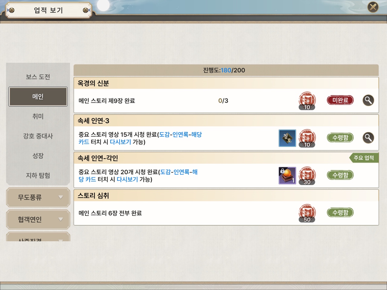 업적달성하면 주는 저 주황색 속성환을 먹으면 공력이 오른다.