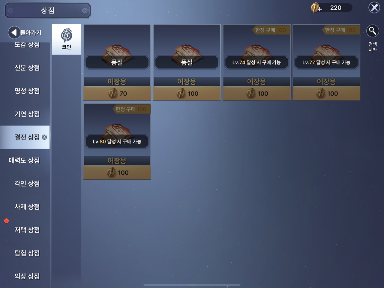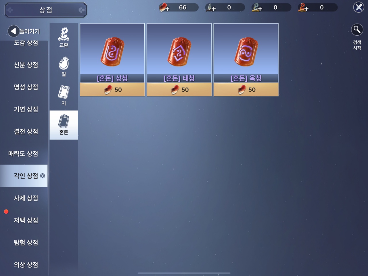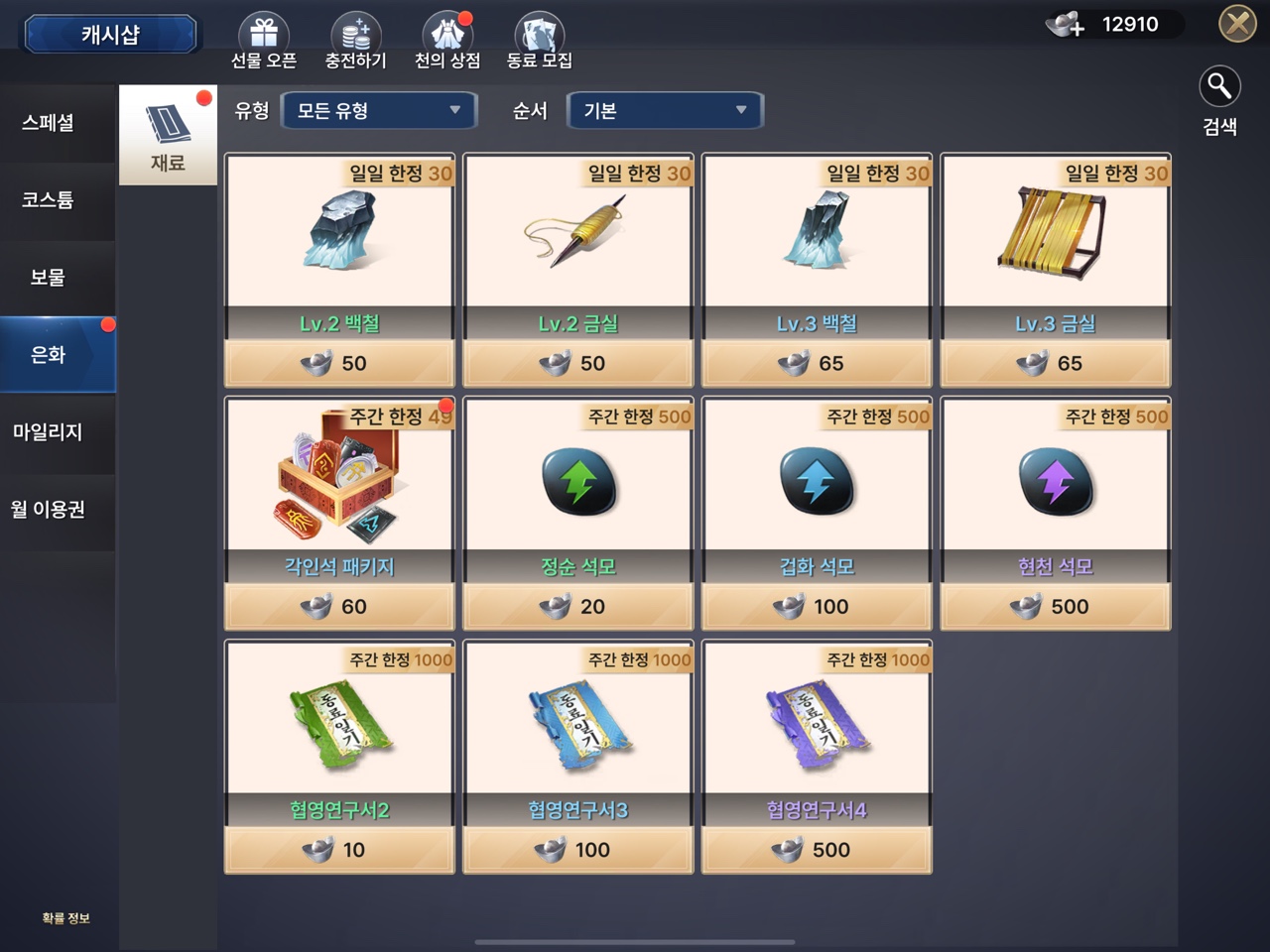 여기는 할인이 들어가는건 아니라서 필요할때만 사고 현천석모나 심법조각 각인석 패키지를 꼬박꼬박 사주도록 하자.
