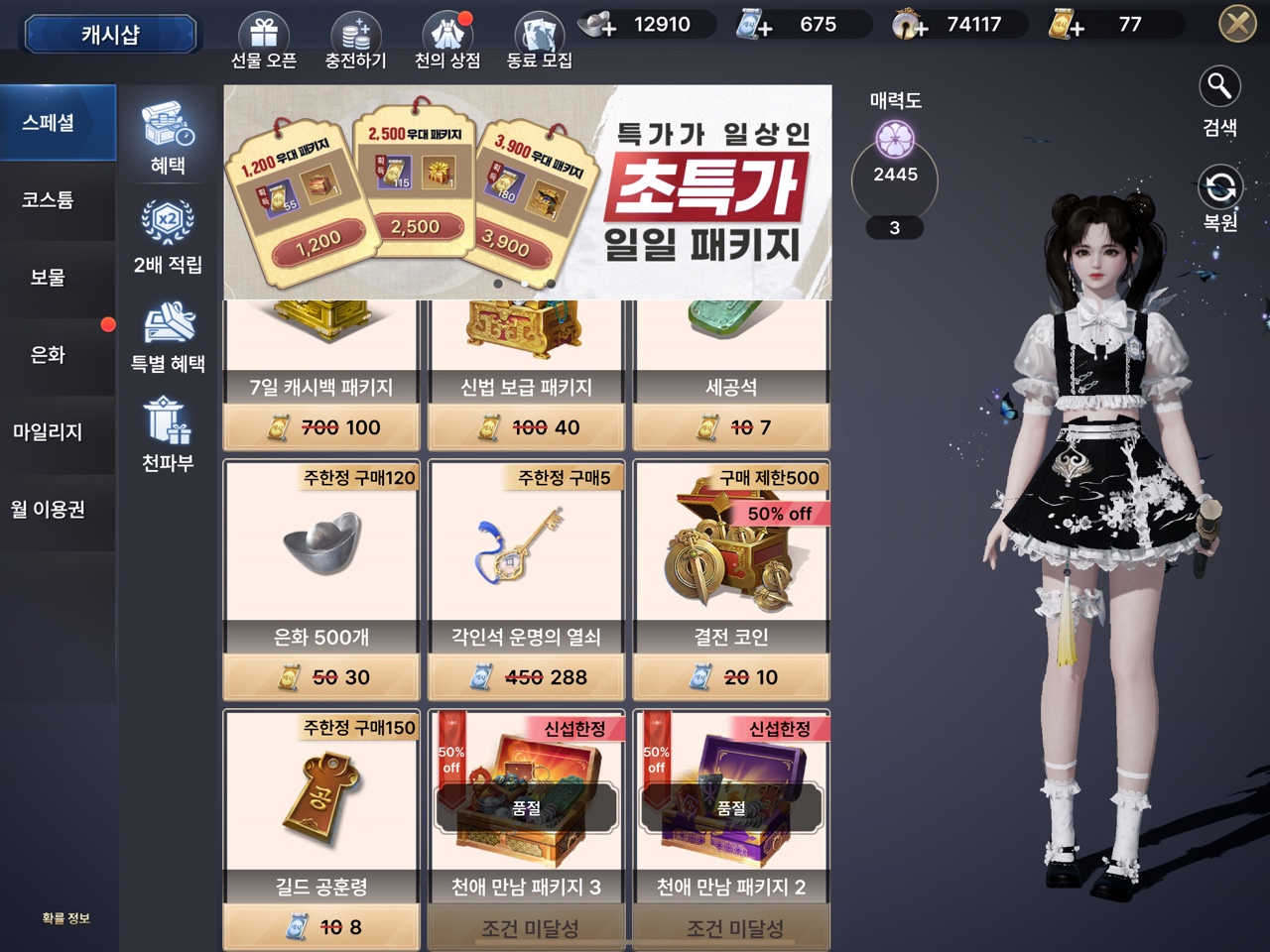 캐시샵에서도 팔고있다. 은화가 충분하다면 일일한정 다 사두자.