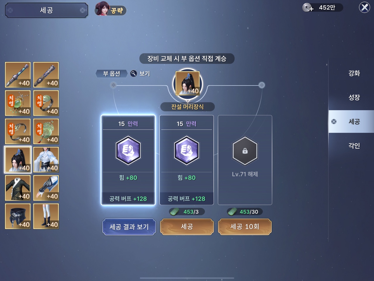 조각상을 강화하면 속성이 오르므로 공력이 오른다.