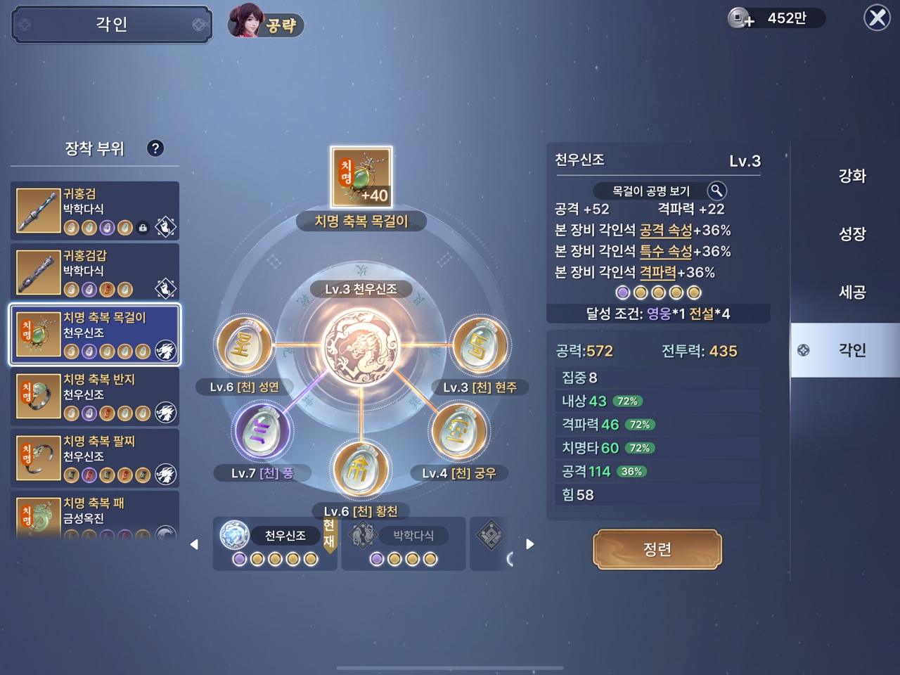 각인이 솔직히 후반부에 공력을 좌우하는 부분이라고 생각하는데