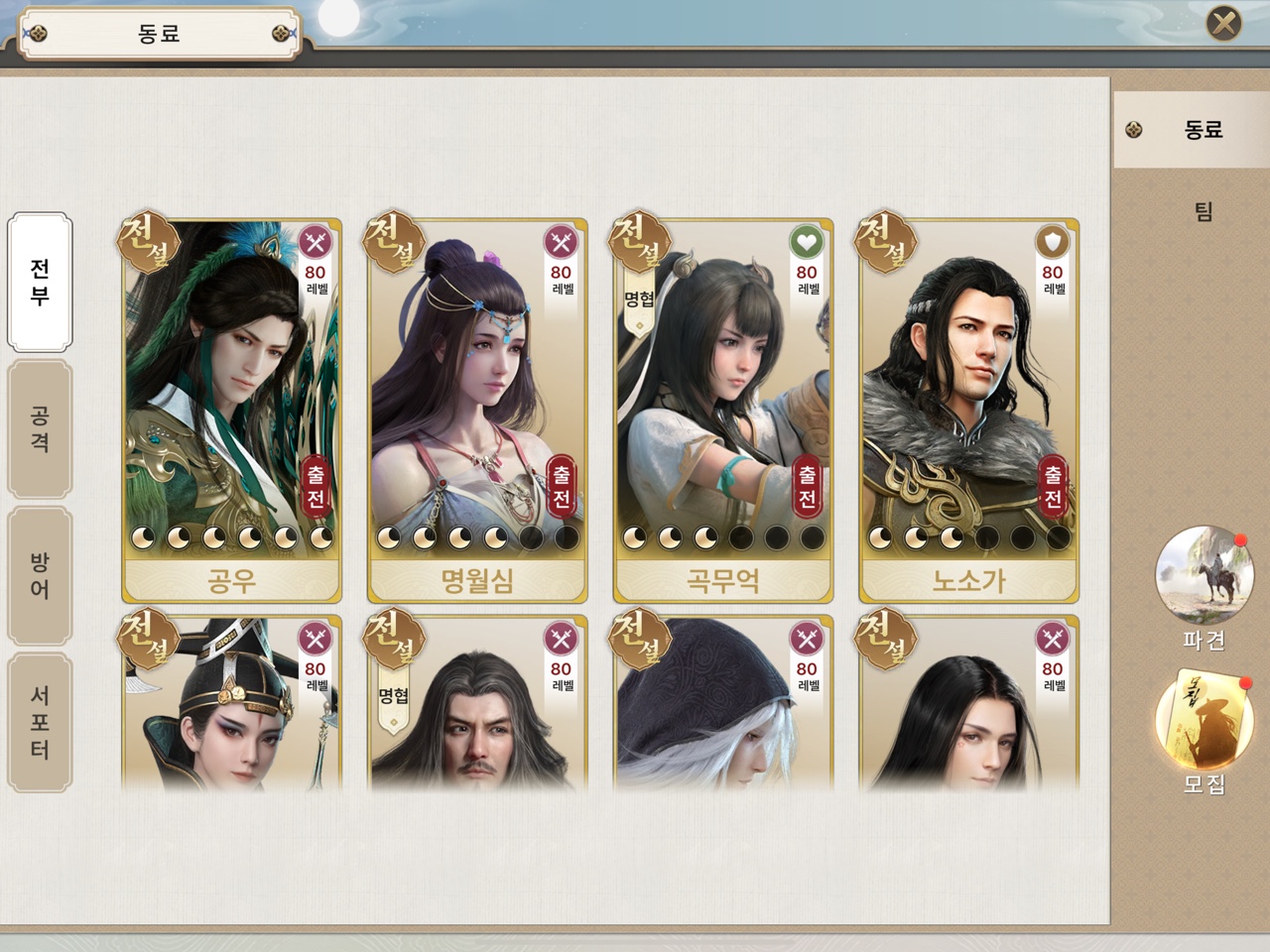 출전하거나 협공하지 않는 녀석들도 파편 모아서 돌파한번 돌때마다 공력이 미미하게 오른다.